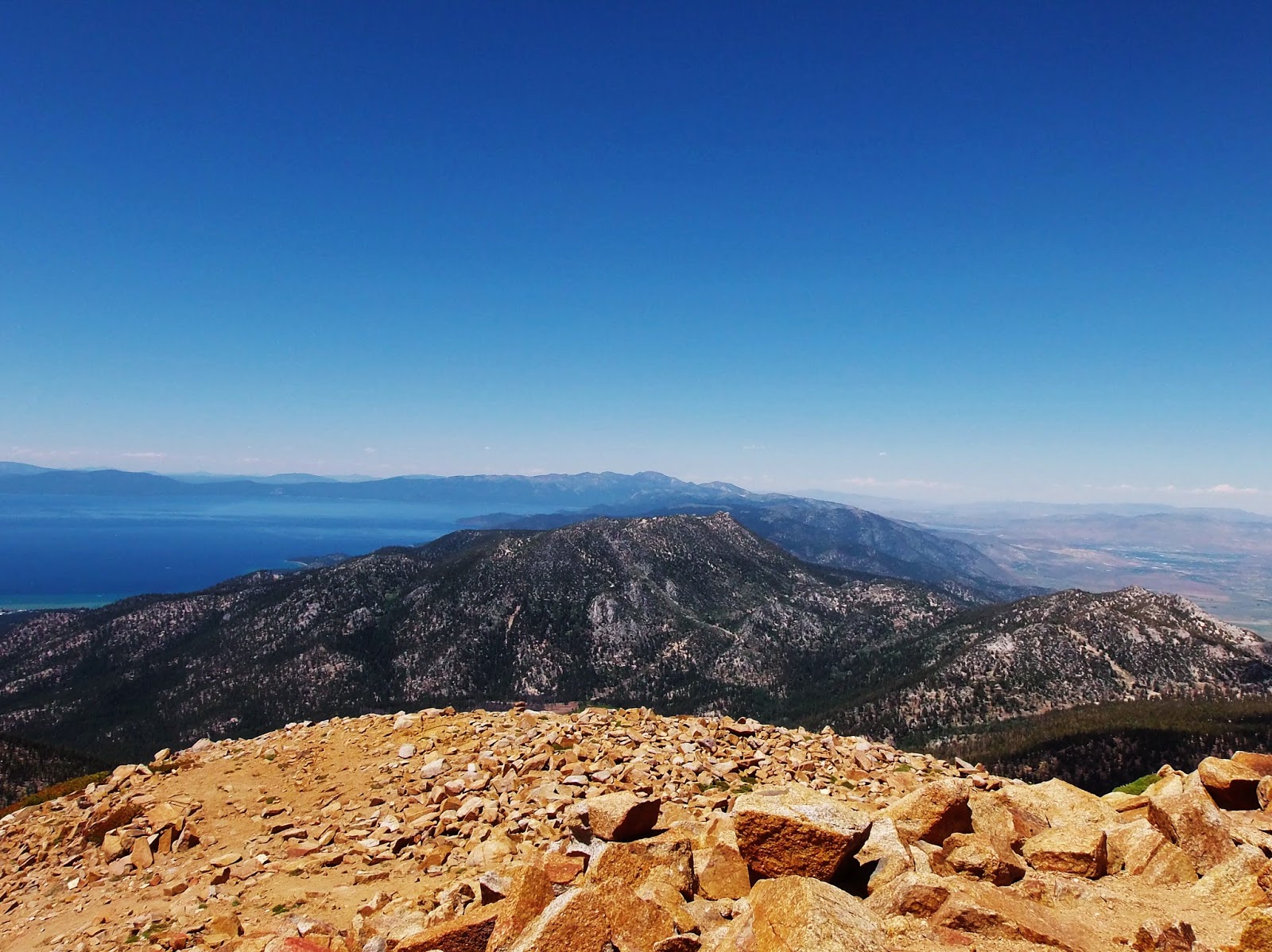 An amazing view of Lake Tahoe, the ridgeline, and Carson Valley on the right side of the picture. Lake level is 6200' and the valley is just over 4,000'.